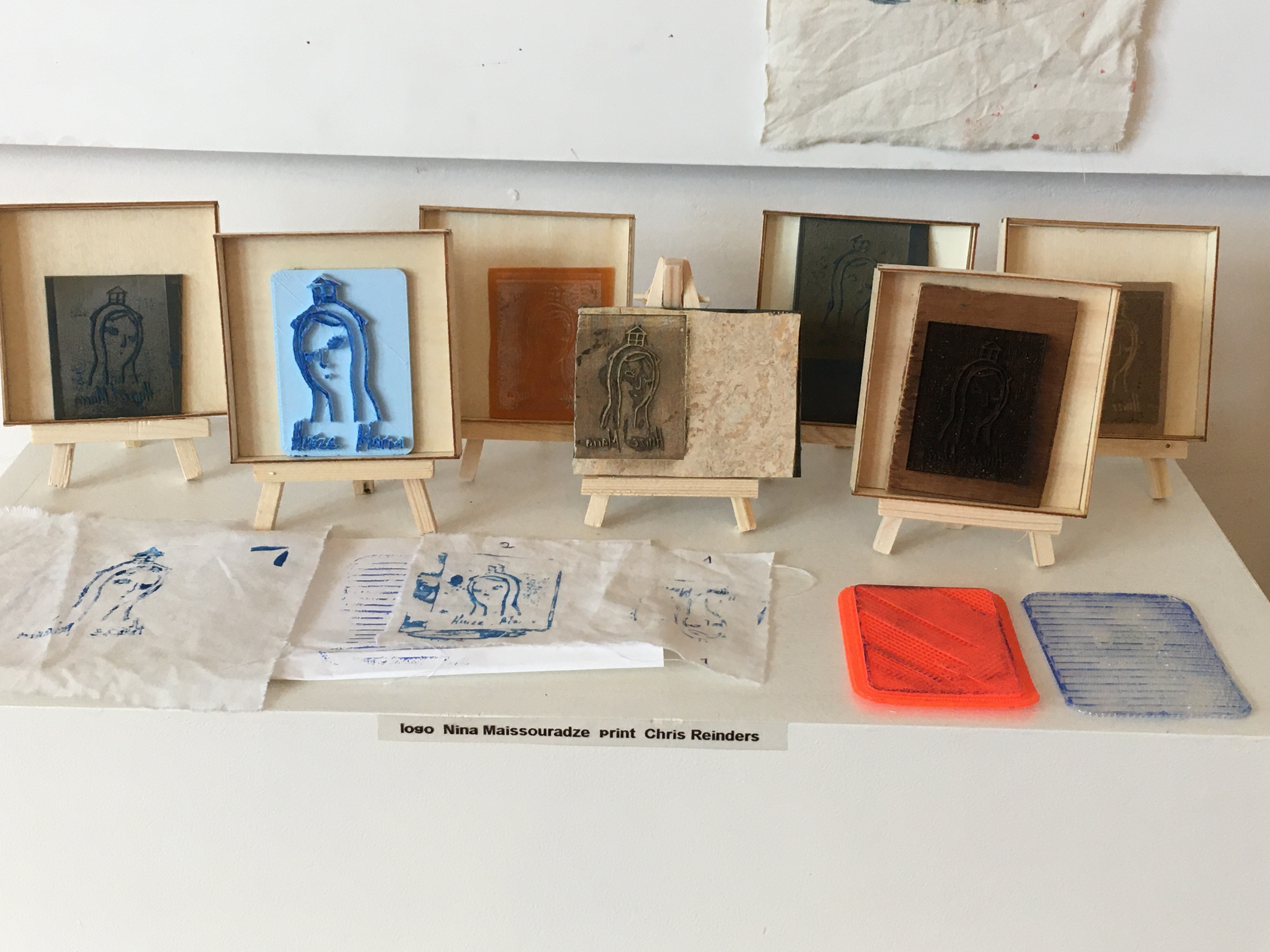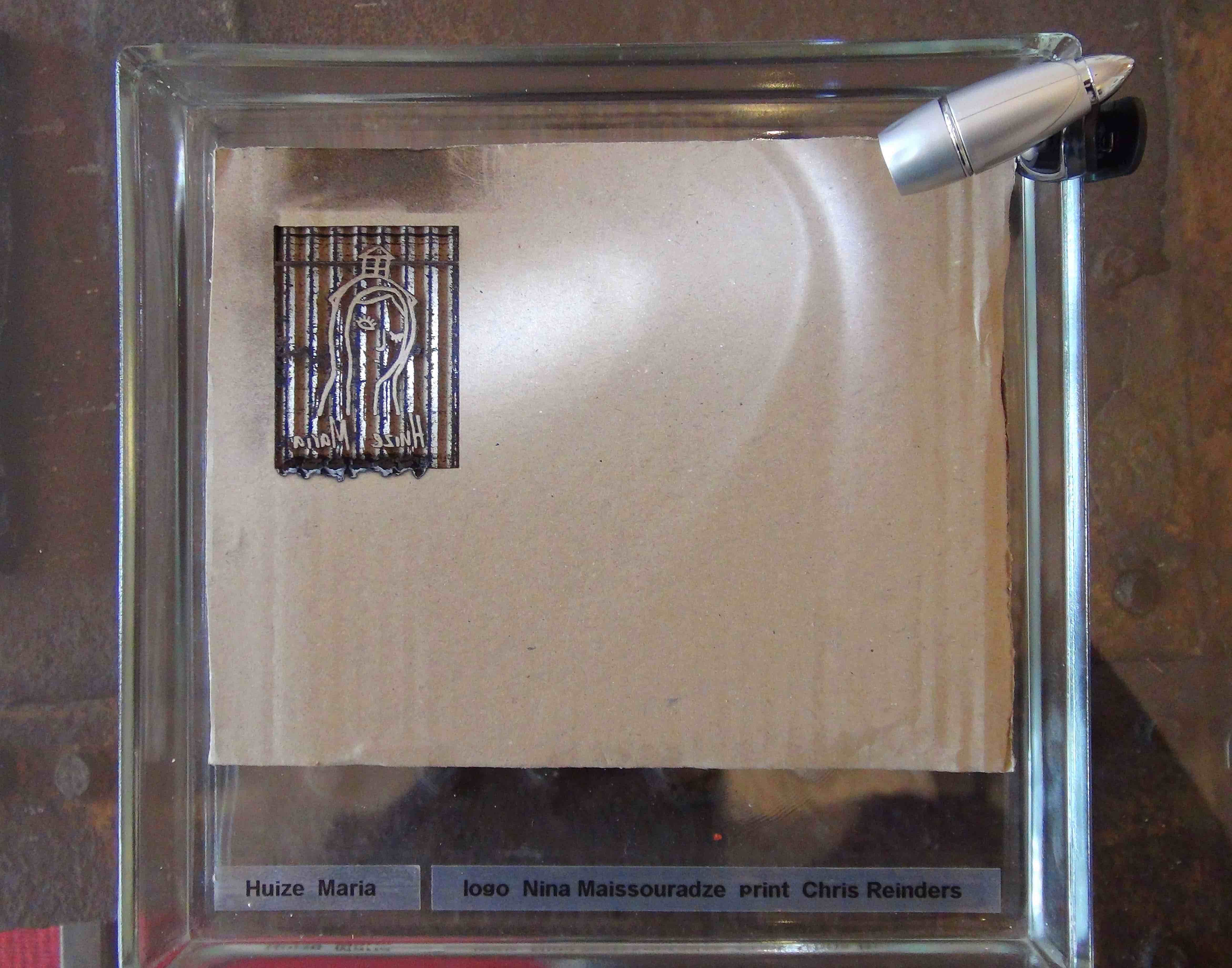 Na vele, vele proefjes in het atelier is het tot een mooie collectie gekomen. Al dan niet toegepast als accessoires, sommige onafgemaakte beauties wachten nog op een briljant idee. Dit weekend werkten ze eraan door. Zo ook aan het Huize Maria logo; collega kunstenaar Chris Reinders heeft in zijn zelf samengestelde machine het logo 3-dimensionaal geprint, gefreesd en door middel van laseren uitgewerkt. Zo werd het een experimentele reis voor allemaal.