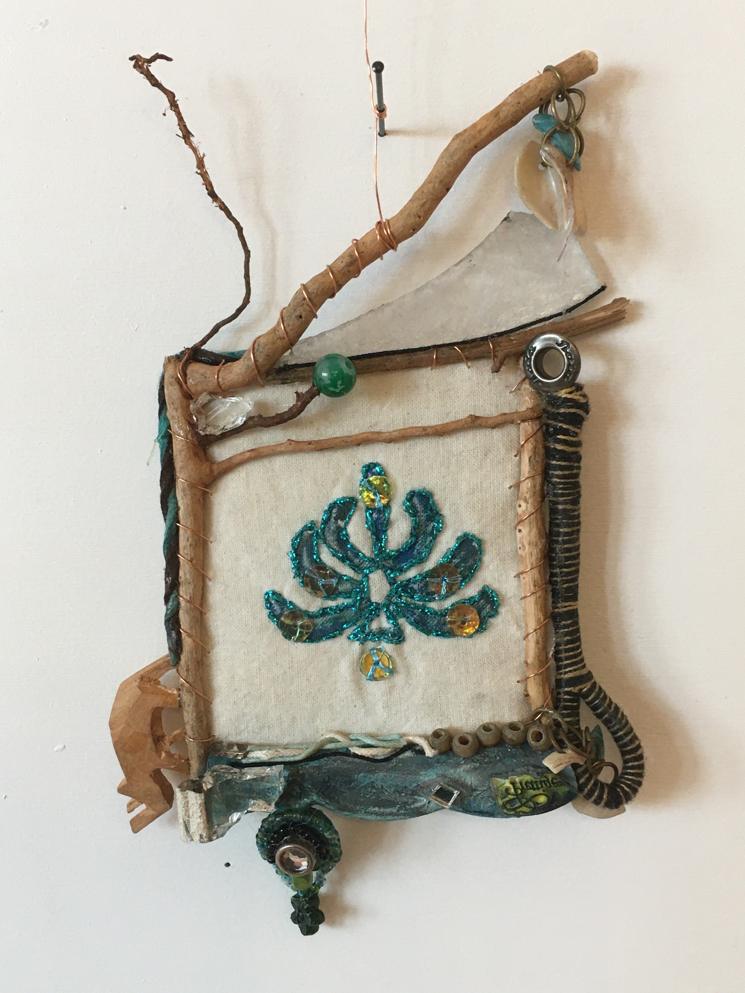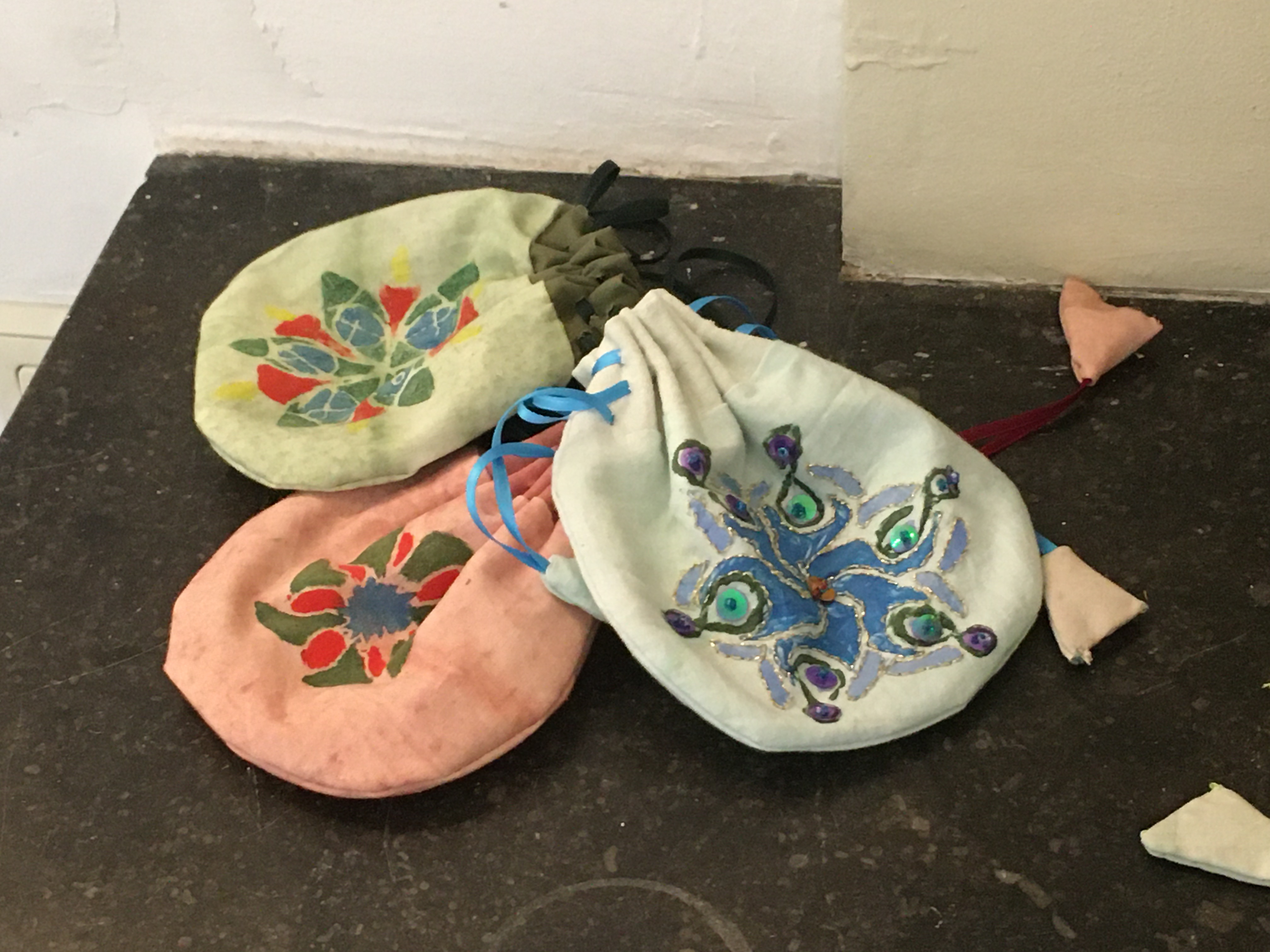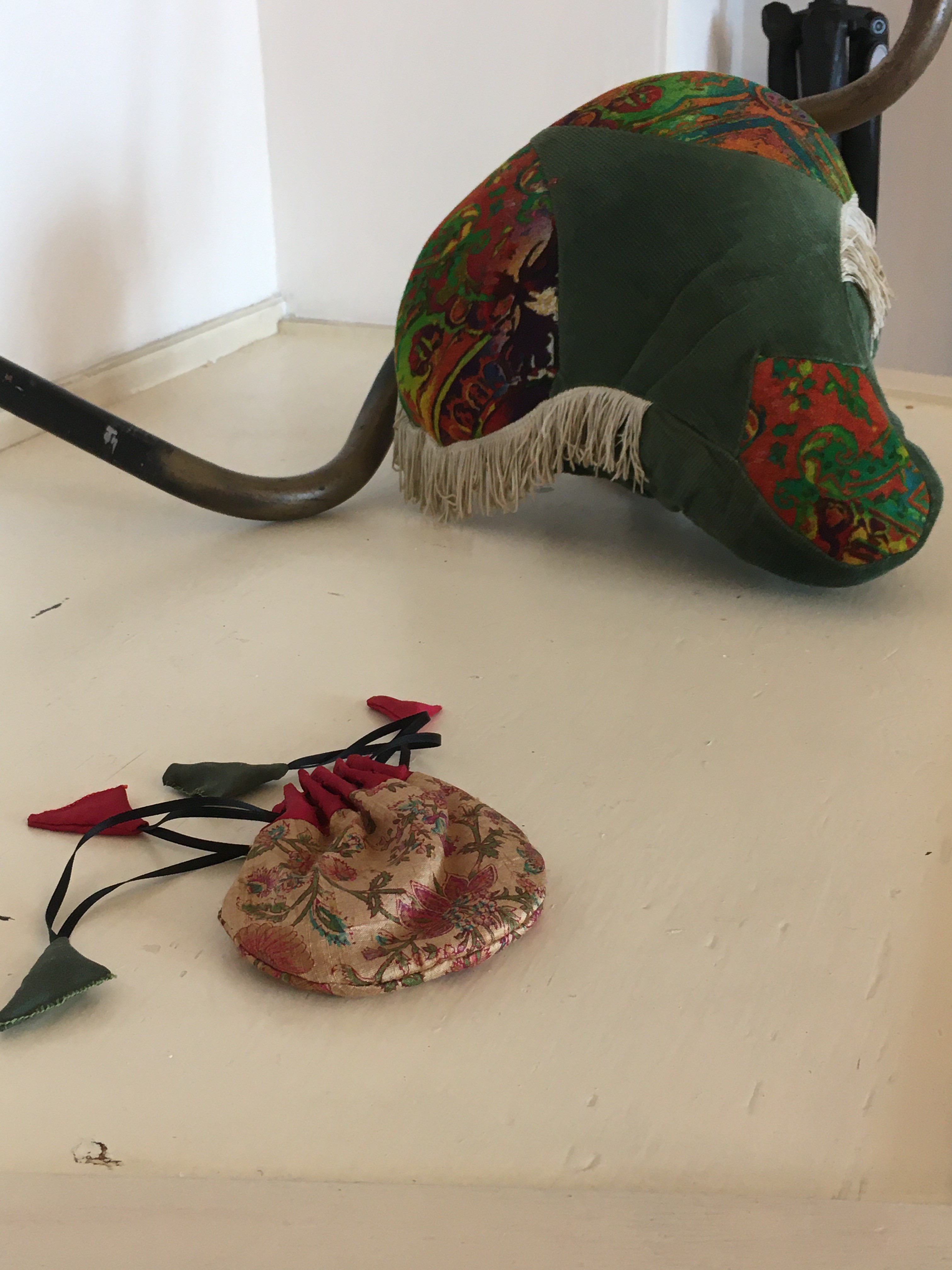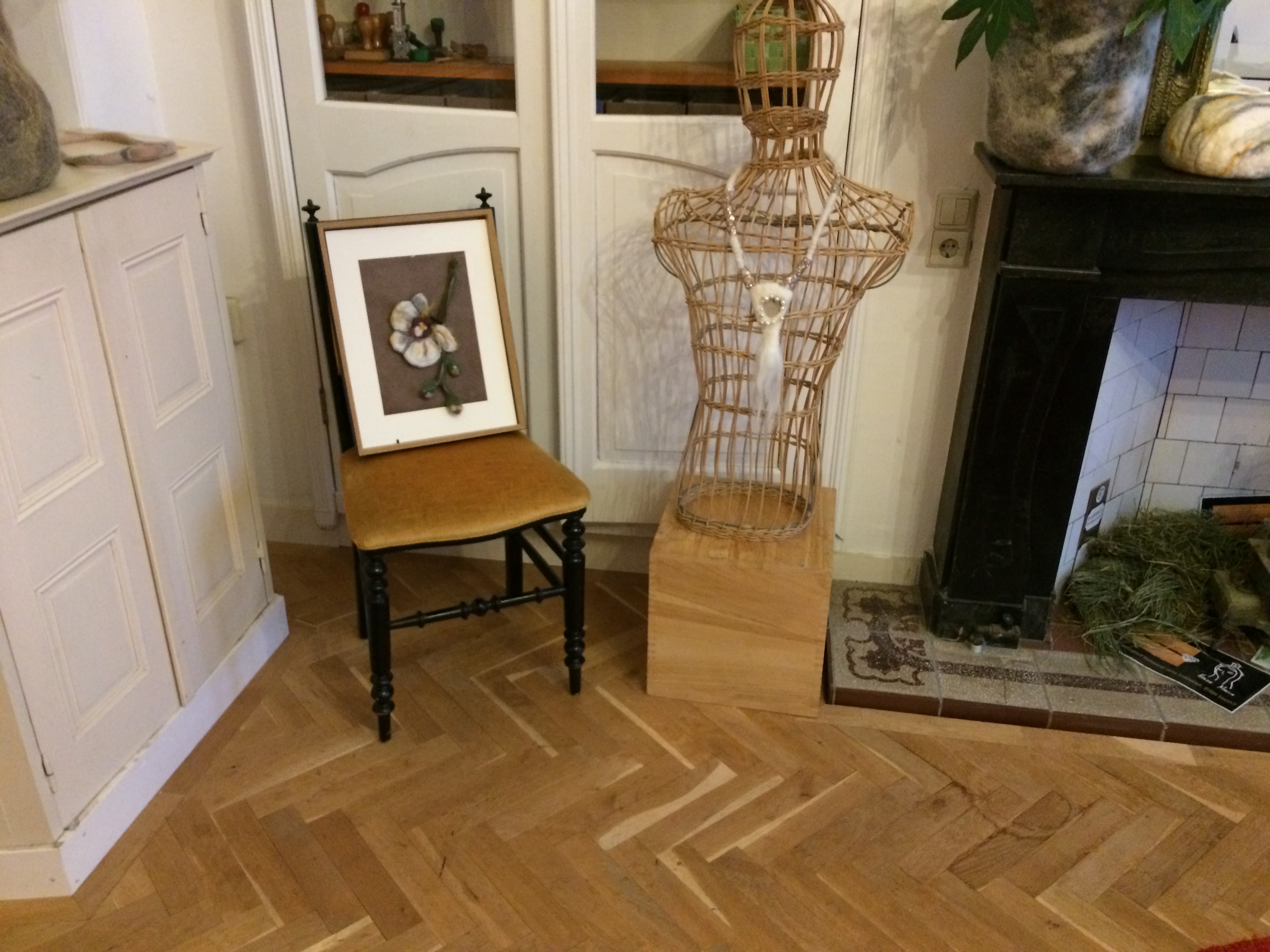 Na een onvrijwillige stop waarbij twee koppels moesten doorschuiven naar een andere datum, hebben Manon en Rietje dit weekend Huize Maria bevolkt en verrast. Manon maakt schilderijen van collages die ze eerst scheurt, knipt en plakt en ze maakt de fijnste kunstwerkjes van allerlei natuurlijke en/of door anderen al weggegooide materialen. Rietje is al haar hele leven gek op stoffen, kleurtjes en glinsterspul. Naast onderdelen voor grotere installaties maakt ze van restjes, nieuwe stof en herkansingsmaterialen speciale gebruiksvoorwerpen.