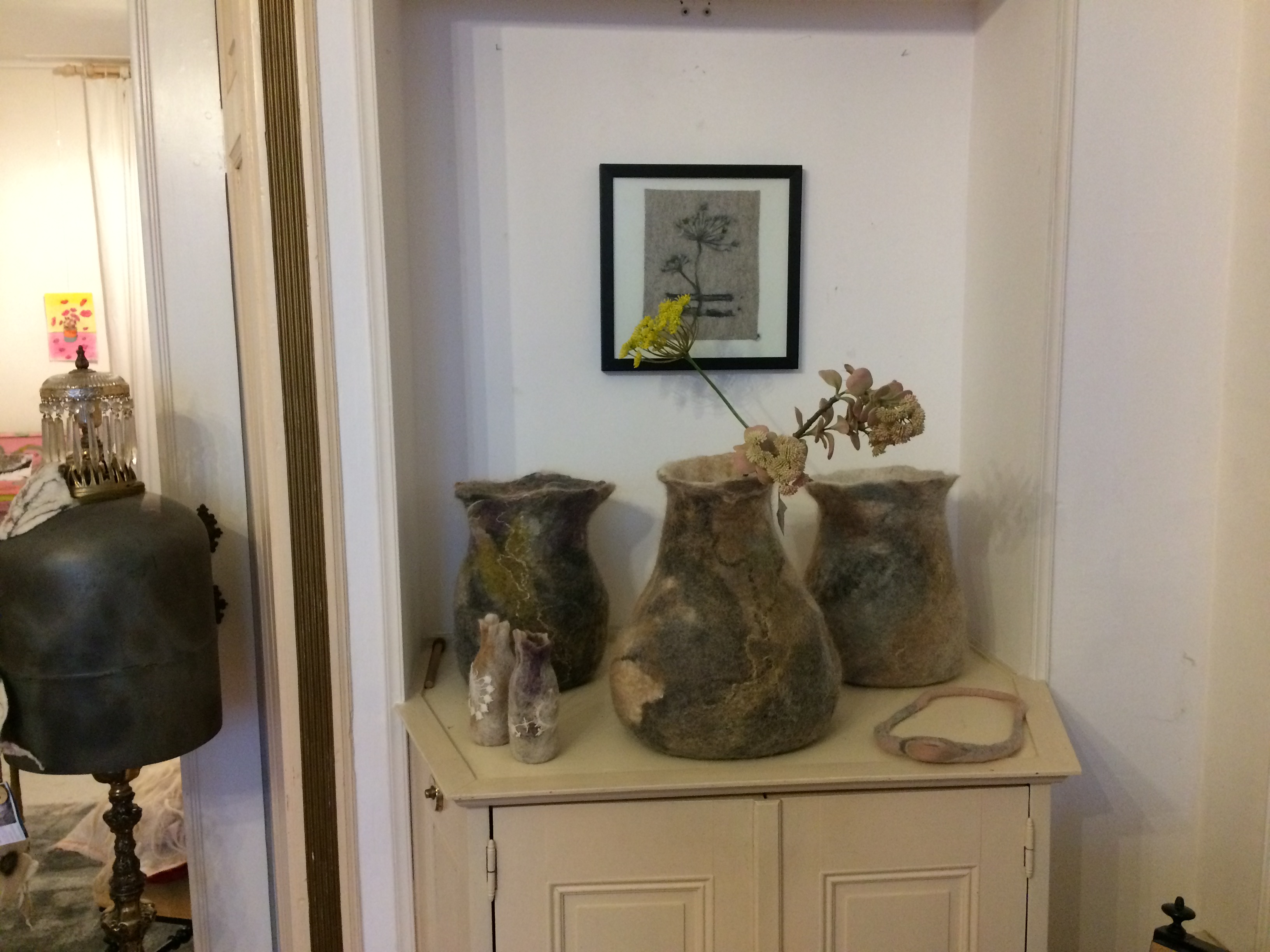 Veelzijdige kunst in vilt; een betere benaming van deze expositie is niet te bedenken. Heidi, Lydia en Carine hebben het vilten, ieder op haar eigen manier tot kunst verheven. Van hoeden tot vazen en van portretten tot vachten. Ondank dat ze in atelier Delta al veel vaker samenwerkten heeft dit weekend in Huize Maria toch een inspirerende werking gehad op alledrie de kunstenaars.