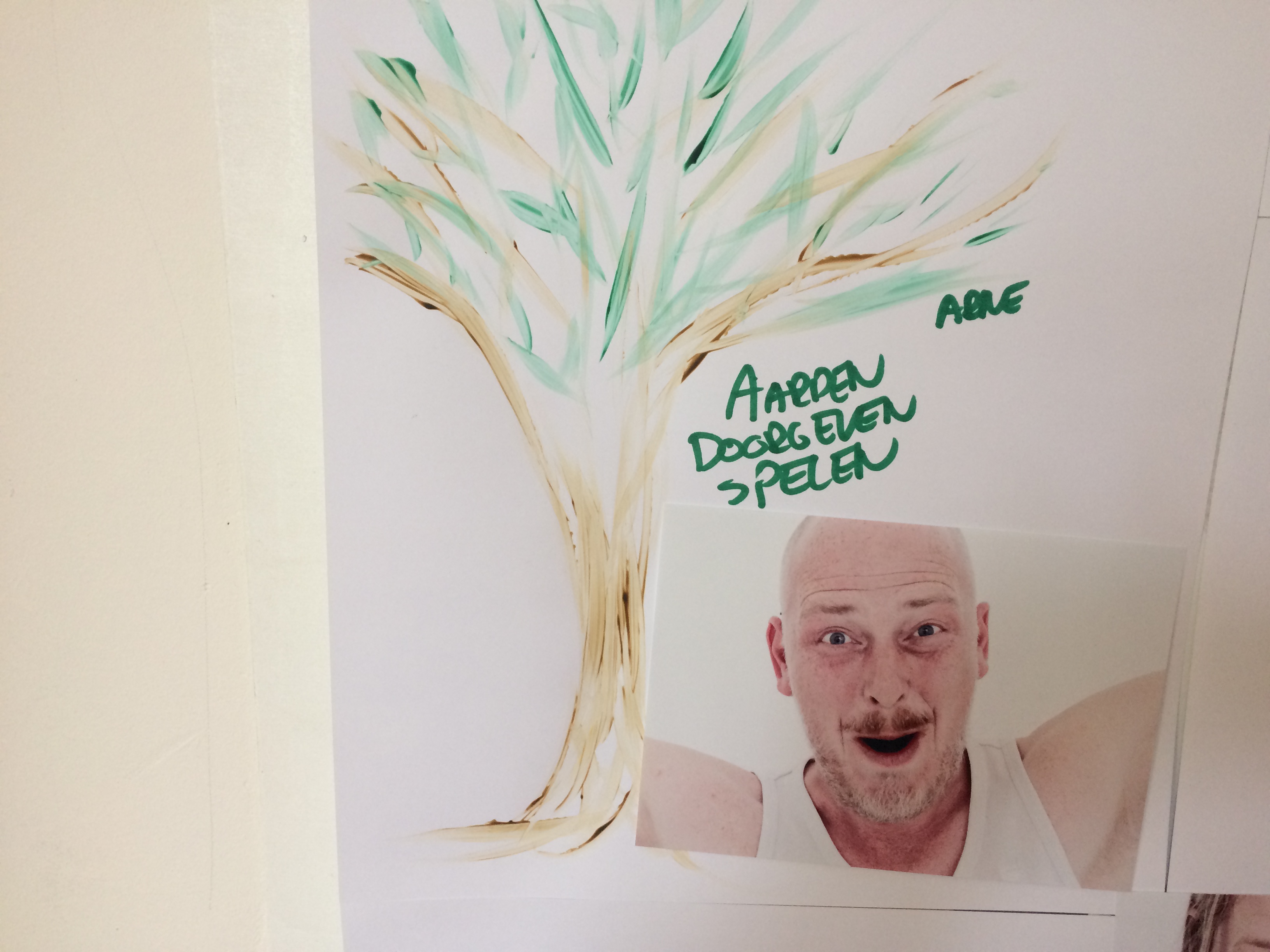 En dan de momenten in de mini-studio; een gesprek met Manon en Rob die ondertussen foto’s maakt. Voor iedereen een speciale gebeurtenis en steeds vertrouwd en intiem. De portretten zijn al (gedeeltelijk) zichtbaar aan het einde van de zondagmiddag. Net als de getekende, geschilderde en anderszins vormgegeven bijdragen op papier. Hoe deze bijzondere combinatie van intieme tekst en fotografie (in zekere zin toch ook heel openbaar) vorm gaat krijgen, blijft nog even spannend.