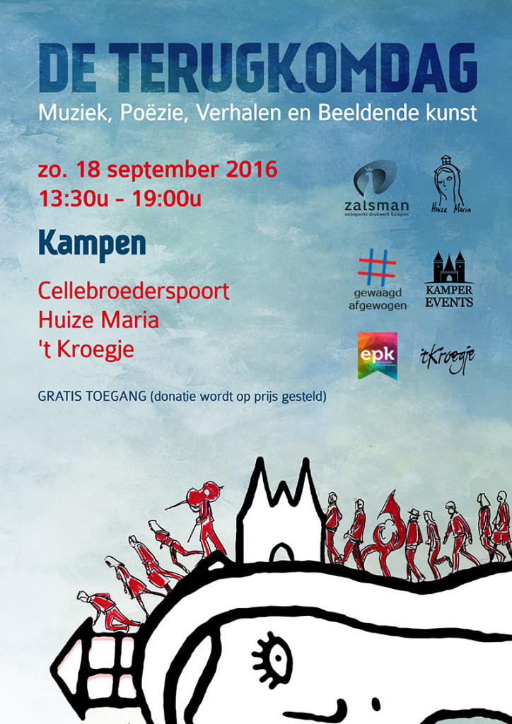 De Belgische -in Zwolle woonachtige- illustrator, performer en verteller Luc Onderbeke heeft een band met deze regio: zo maakte hij o.a. de graphic novel Zo is het niet gegaan in het verlengde van Stadsopera Amalia Bandi. Voor de Terugkomdag komt hij een selectie teksten voordragen. Zangeres, pianiste en actrice Suze Cramer zal hem muzikaal ondersteunen.