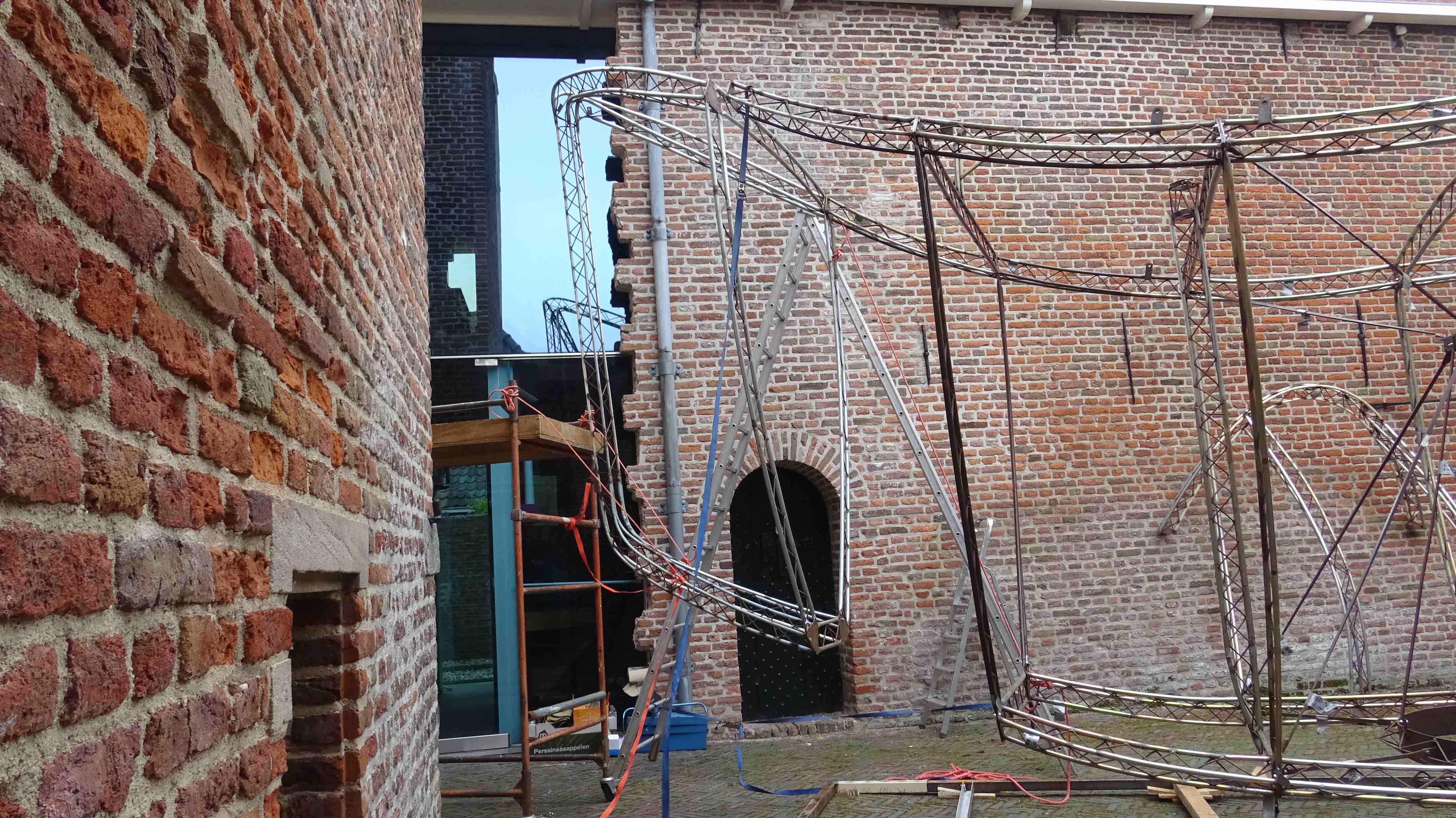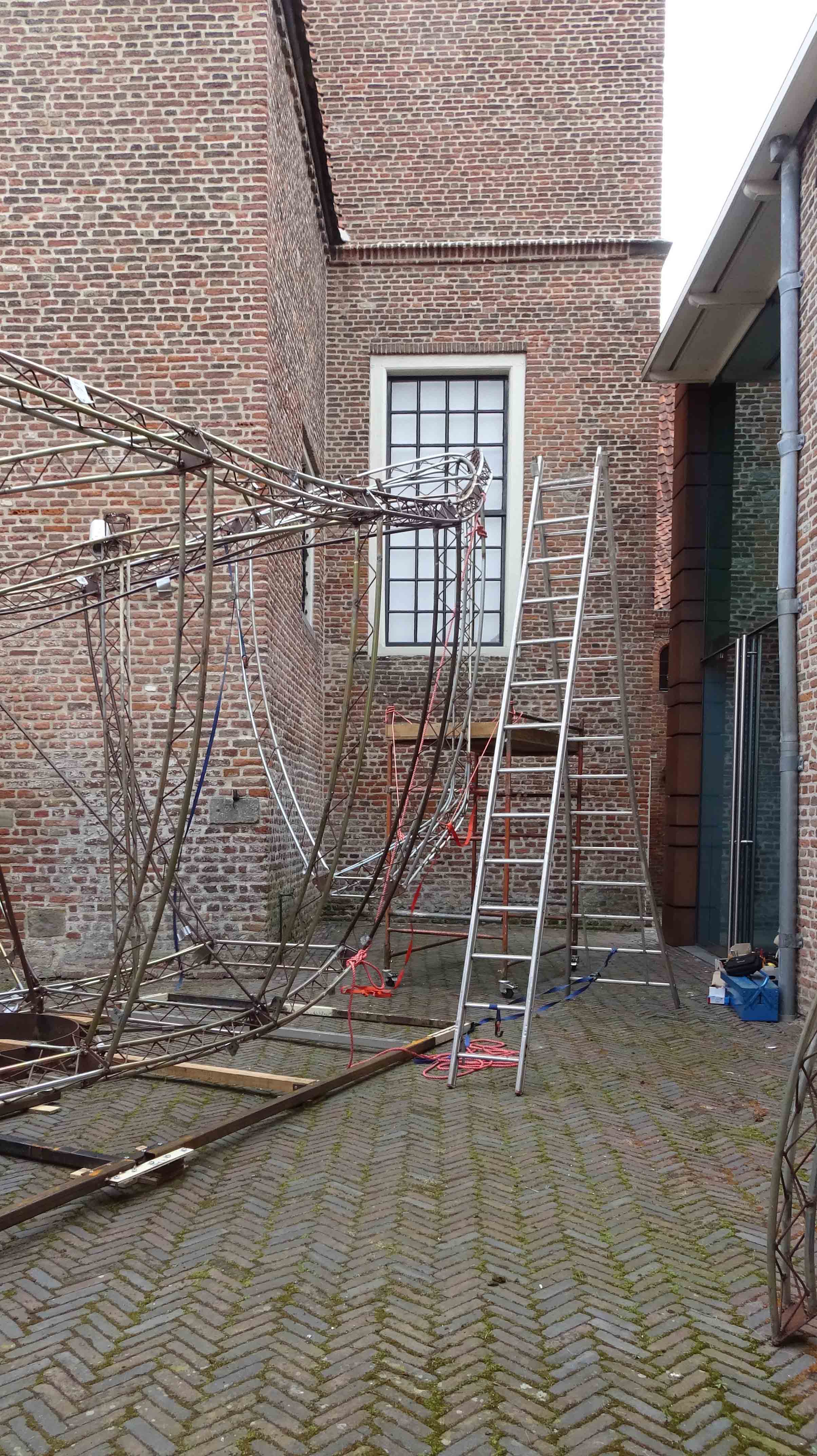 Kunstenaarsduo work#art installeert haar poëtische artwork ‘Ontogenesis’ op de binnenplaats achter het Nationaal Orgelmuseum (ingang Hondegatsteeg).