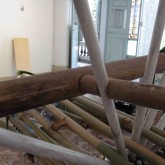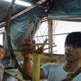 Ons werk is ter plekke ontwikkeld als een samenwerkingsproject dat twee culturen vertegenwoordigt. We hebben met twee Vietnamese kunstenaars gewerkt en met materiaal dat natuurlijk voorradig is hier.