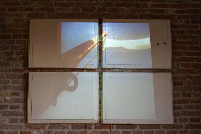 Witte vlag aan een lange stang die rond een mast draait. Aan de onderkant van die stang is een buitencamera bevestigd die verticaal naar boven gericht de wapper (= onderste kopse zijkant van de vlag) als een schriftlijn of golfbeweging volgt en in beeld brengt. Daarmee is de zelfkant van het doek (als een blad papier) de kant die de bevlogenheid beschrijft en in die zin als curve te onderzoeken is.