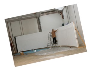 Linda volgt wat ze doen en omgeeft dit met haar werk. Zelf is ze bezig met wat in haar opkomt te verwerken tot iets dat zich aan haar voordoet en duidt dat in de tijd via de afmeting van het doek dat ze al schilderend op het wit verovert.