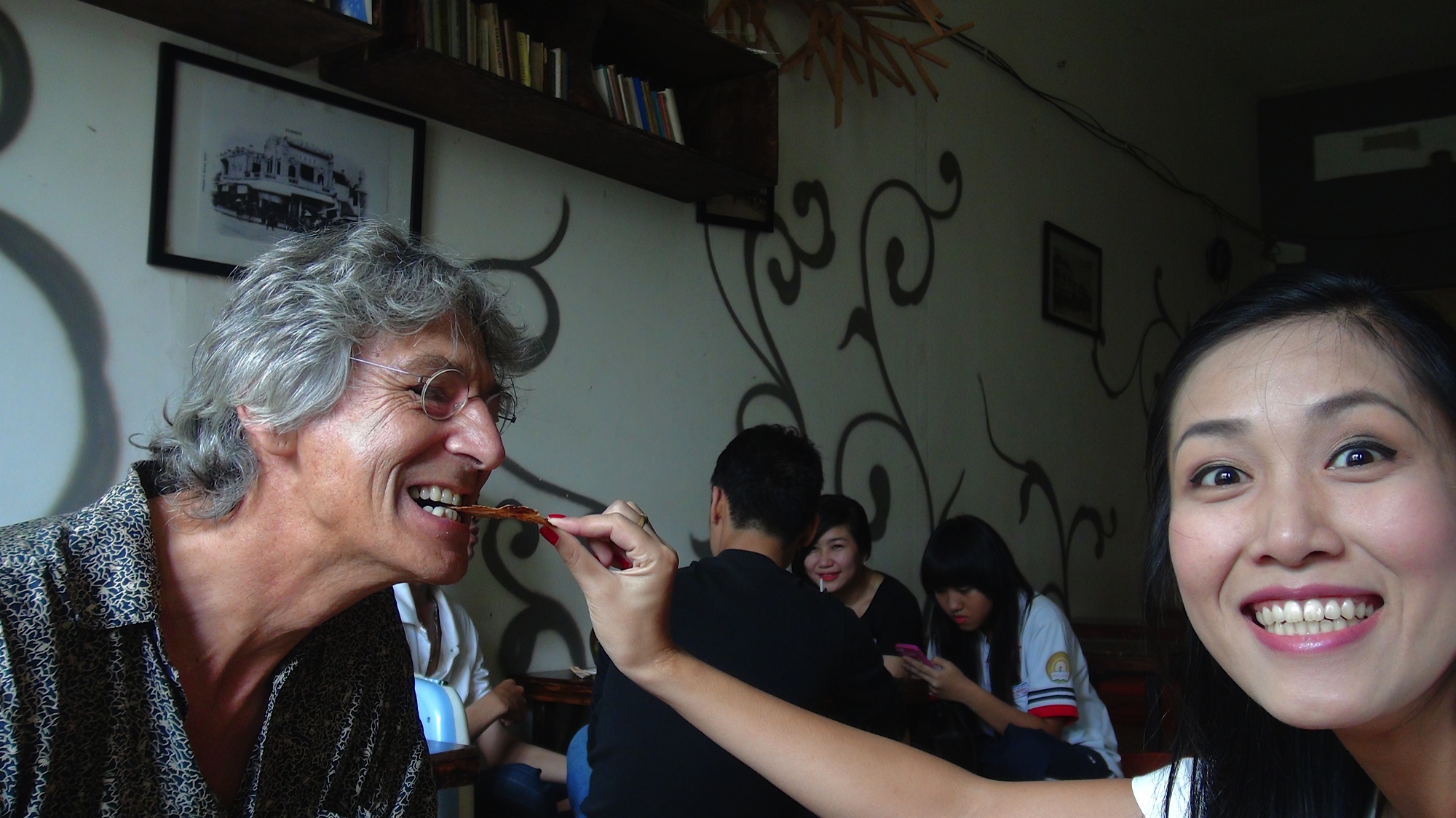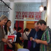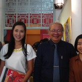 Mr. Uyen Huy en Hăn, op de opening van een schilderijen tentoonstelling in het HCMC Museum for Fine Art.