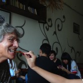 Voor Teachers Day, een nationaal gebeuren, hebben Han en Tu een klusje: 4 grote crepe-papieren bloemen maken.